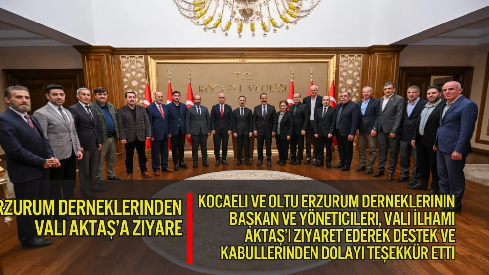 Kocaeli Erzurum Dernekler Federasyonu Başkanı Tekin Dursun, Erzurum Oltu Dernekler Federasyon Başkanı Fatih Hiç durmaz, Kocaeli Erzurumlular Dernek Başkanı Avni Gözütok,beraberlerindeki yönetim ve federasyon üyeleri ile Vali İlhami Aktaş’ı ziyaret ederek kabullerinden dolayı teşekkür ettiler.