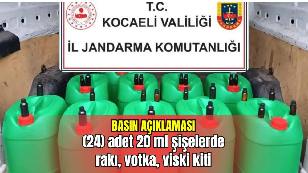 Kocaeli İl Jandarma Komutanlığınca; kaçakçılık suçları ile mücadele kapsamında yürütülen çalışmalar neticesinde, 26 Kasım 2025 tarihinde Gebze ilçesinde bir araçta yapılan aramada, (400) litre kaçak/sahte alkollü içki ve alkollü içki yapımında kullanılan (24) adet 20 ml şişelerde rakı, votka, viski kiti (aroma ve renklendirici) ele geçirilmiş olup, olay şüphelisi 1şahıs hakkında adli tahkikata başlanılmıştır.